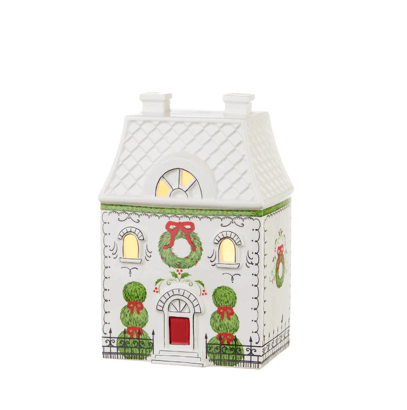 These tabletop lights stand out with their elegant details: green garlands, red festoons, and carefully crafted architectural shapes. The church bell tower evokes a tranquil and peaceful atmosphere, while the small houses add a warm and sophisticated touch to your Christmas tree or living room. Thanks to the soft glow of built-in LED lights, they create a warm and inviting atmosphere, perfect for family evenings.
