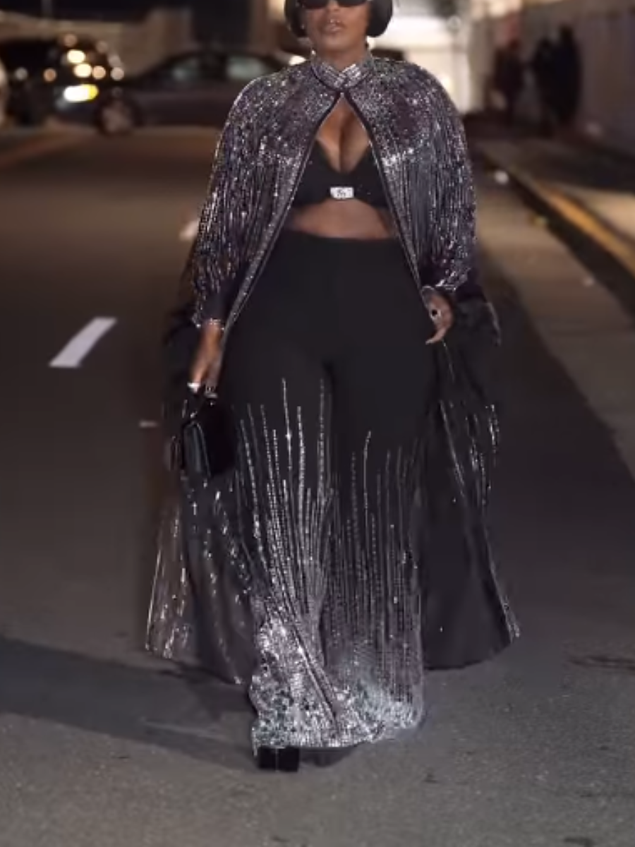 Silver Rhinestone Trim Pants Set